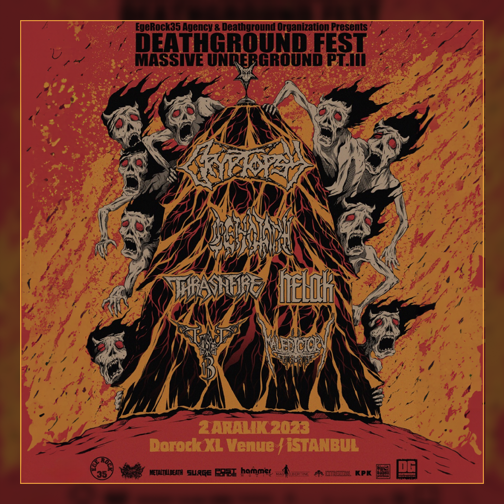 2023’ün sonlarına yaklaşırken yılın ikinci ve tek metal festivali Deathground Festival: Massive Underground Part III ile kapanışı yapmaktan mutluluk duyarız. EgeRock35 ve Deathground işbirliğiyle düzenlediğimiz bu festivalde headliner olarak Kanada’nın en köklü death metal grubu Cryptopsy’i ağırlayacağız ve Ankaralı gruplar Cenotaph, Thrashfire, İstanbul’dan Helak, Eskişehir’den Episode13, ve Bursa’dan Maledictory festivalde sahne alacak diğer isimler olacak.