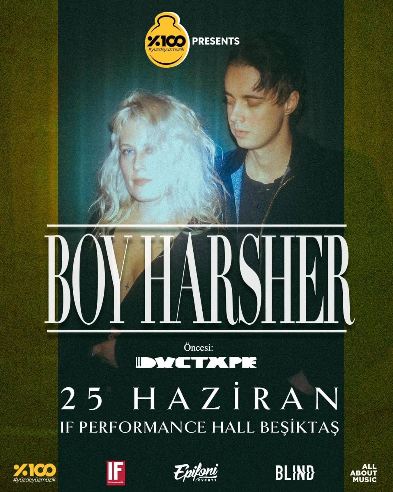 Dark wave ve minimal synth sahnesinin en etkileyici ikililerinden Boy Harsher, 25 Haziran’da %100 Müzik katkıları ve Epifoni, Blind ortak organizasyonuyla IF Performance Hall Beşiktaş sahnesinde Northampton, ABD merkezli ikili vokalist/gitarist Jae Matthews ve yapımcı Augustus Muller’den oluşan Boy Harsher, 2014’ten bu yana yayınladıkları EP ve albümlerle büyük bir hayran kitlesi kazandı. 2019 tarihli Careful ile uluslararası çapta ses getirdi. 2022’de yayınladıkları ve aynı adı taşıyan kısa filmleriyle birleşen The Runner albümü, sinematik yaklaşımlarını müziklerine taşıyarak grubun vizyonunu daha da genişletti