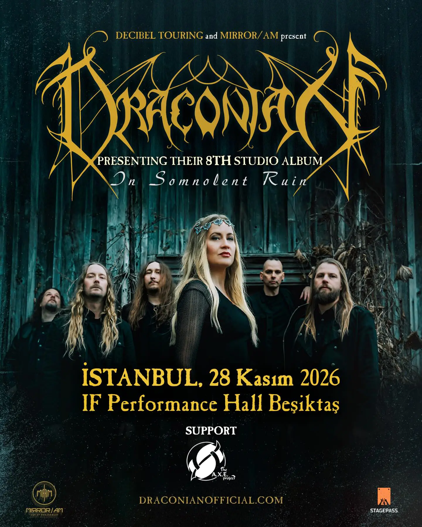 Gotik doom metalin İsveçli temsilcisi Draconian, Stagepass organizasyonuyla Kasım ayında İstanbul ve Ankara’ya geliyor. 28 Kasım’da IF Performance Hall Beşiktaş’ta, 29 Kasım’da ise Jolly Joker Ankara’da gerçekleşecek konserlerin açılışını, Bulgaristan kökenli senfonik/progresif metal grubu The A.X.E. Project gerçekleştirecek.