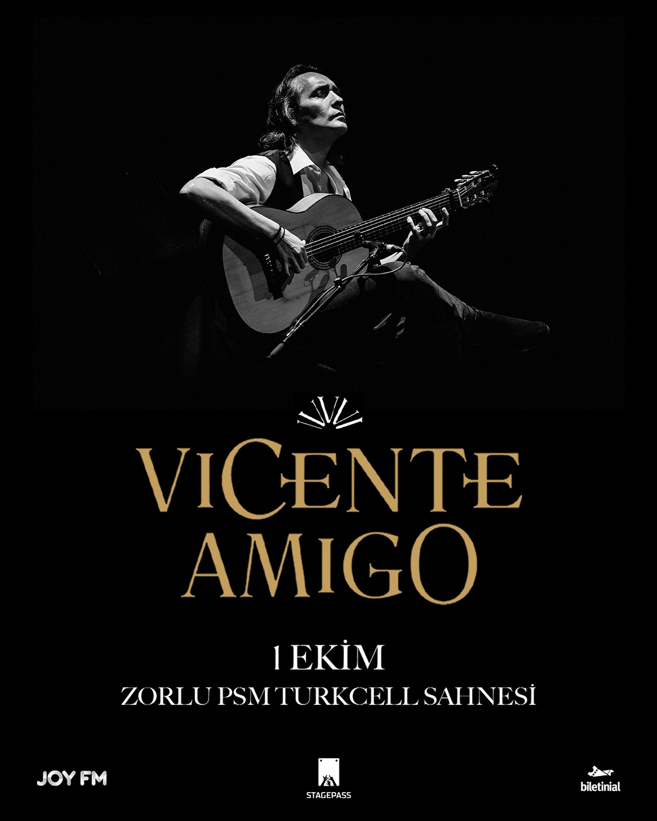 Dünya çapında flamenko gitarının en büyük isimlerinden biri olarak kabul edilen Vicente Amigo, 1 Ekim 2025’te Zorlu PSM Turkcell Sahnesi’nde dinleyicileriyle buluşuyor! Stagepass organizasyonuyla gerçekleşecek bu özel konser, tutkulu melodiler ve büyüleyici bir sahne performansıyla müzikseverlere unutulmaz bir gece yaşatacak.