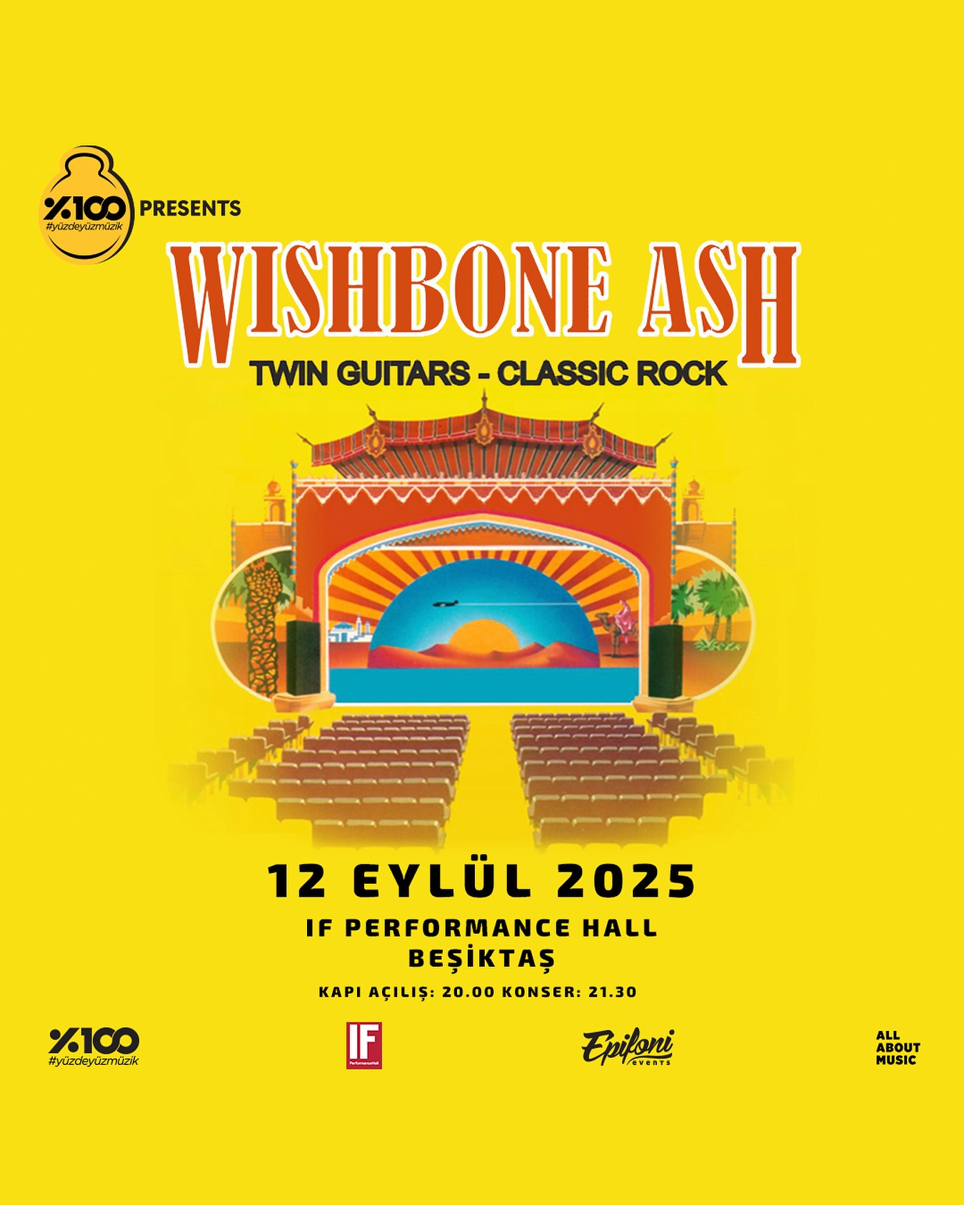 Melodik, enerjik hard rock ile progresif rock arasındaki ince bir alanda duran müzikleri ile rock müziğinde tüm zamanların en mühim toplulukları arasında görülen Wishbone Ash, 12 Eylül 2025’te If Performance Hall Beşiktaş – Istanbul’da sahne almak üzere Epifoni organizasyonu ve %100 Müzik katkıları ile ülkemize geliyor.