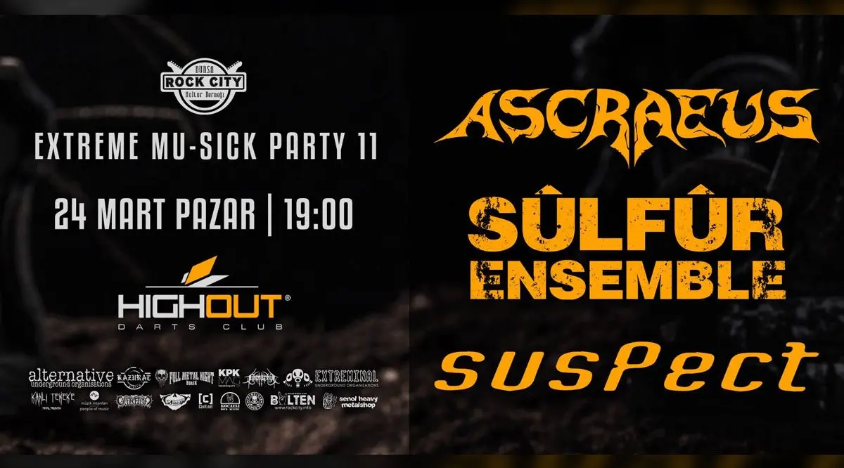İstanbullu Thrash Metal grubu Ascraeus, İstanbullu Sludge/Doom Metal grubu Sülfür Ensemble ve Bursalı Metal grubu Suspect 24 Mart Pazar günü High Out’ta!
