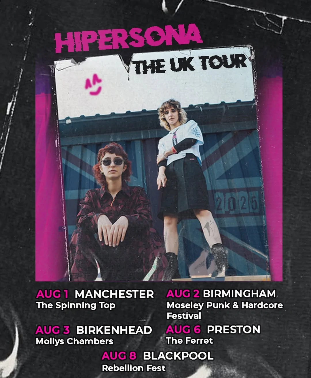 Yüksek enerjili şarkılarıyla dinleyicisini harekete geçiren; sahnede çığlık atmaktan, duvarları yıkmaktan çekinmeyen Hipersona, Ağustos 2025’te Birleşik Krallık turnesine çıkıyor. Üstelik final durağı, punk dünyasının kutsal mekânlarından biri olan Rebellion Festival.
