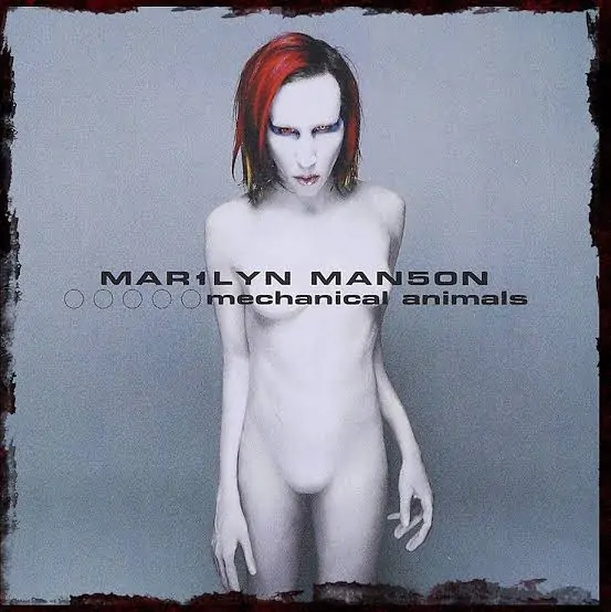 Mechanical Animals albümünün kapağında Manson bir beden değil, bir üründür artık. Cildi metalik beyaz, göğüsleri prostetik, ifadesi sıfır. Adı ise Omēga — hem alfabenin son harfi, hem de insanlığın son formu.