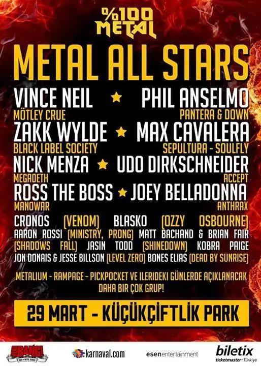 “Metal All Stars” kapsamında sahne alan gruplara ilaveten, Mötley Crüe’den Vince Neil’in de 2014 Avrupa turunun, İstanbul’un da dahil olduğu bazı showlarında konuk sanatçı olarak, sevdiğiniz Mötley Crue hitlerini çalıyor olacak.