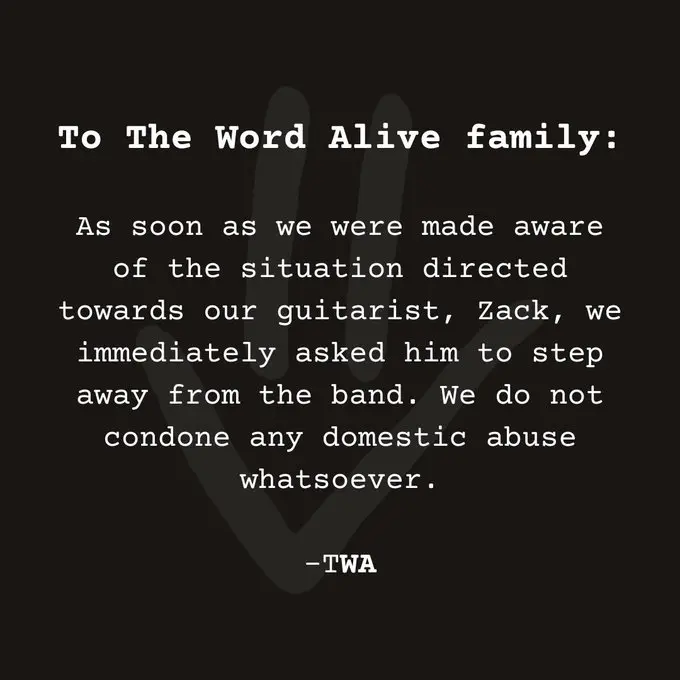 The Word Alive, gitaristleri Zack Hansen’in sevgilisine yönelik aile içi şiddet iddialarını gösteren görüntüleri nedeniyle gruptan uzaklaştırıldığını açıkladı.