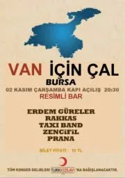 Bursa’lı amatör gruplarımız Van depreminin yaraları sarılması için Resimli Bar sahnesinde bir etkinlik düzenliyor.