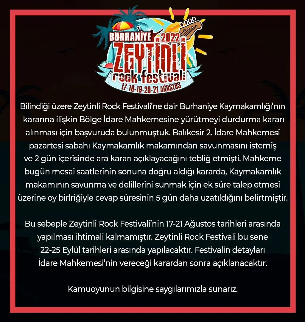 Zeytinli Rock Festivali 2022 yeni tarihZeytinli Rock Festivali 2022 yeniZeytinli Rock Festivali 2022 iptalZeytinli Rock Festivali 2022 yasaklandıZeytinli Rock Festivali 2022