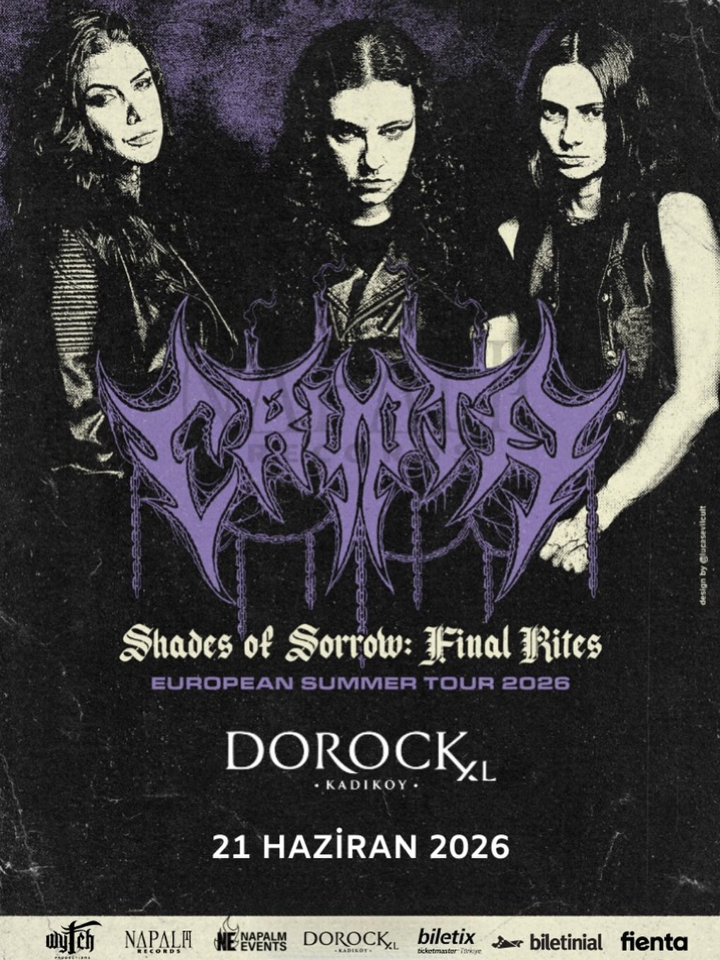 2019 yılında kurulan ve tamamı kadın müzisyenlerden oluşan Crypta, türün sınırlarını zorlayan teknik altyapısı ve karanlık atmosferiyle kısa sürede dünya sahnelerinin vazgeçilmezi haline geldi. Echoes of the Soul ve son başyapıtları Shades of Sorrow ile listeleri altüst eden grup, Wacken’dan Hellfest’e kadar dev festivallerdeki performanslarını şimdi İstanbul’a taşıyor.