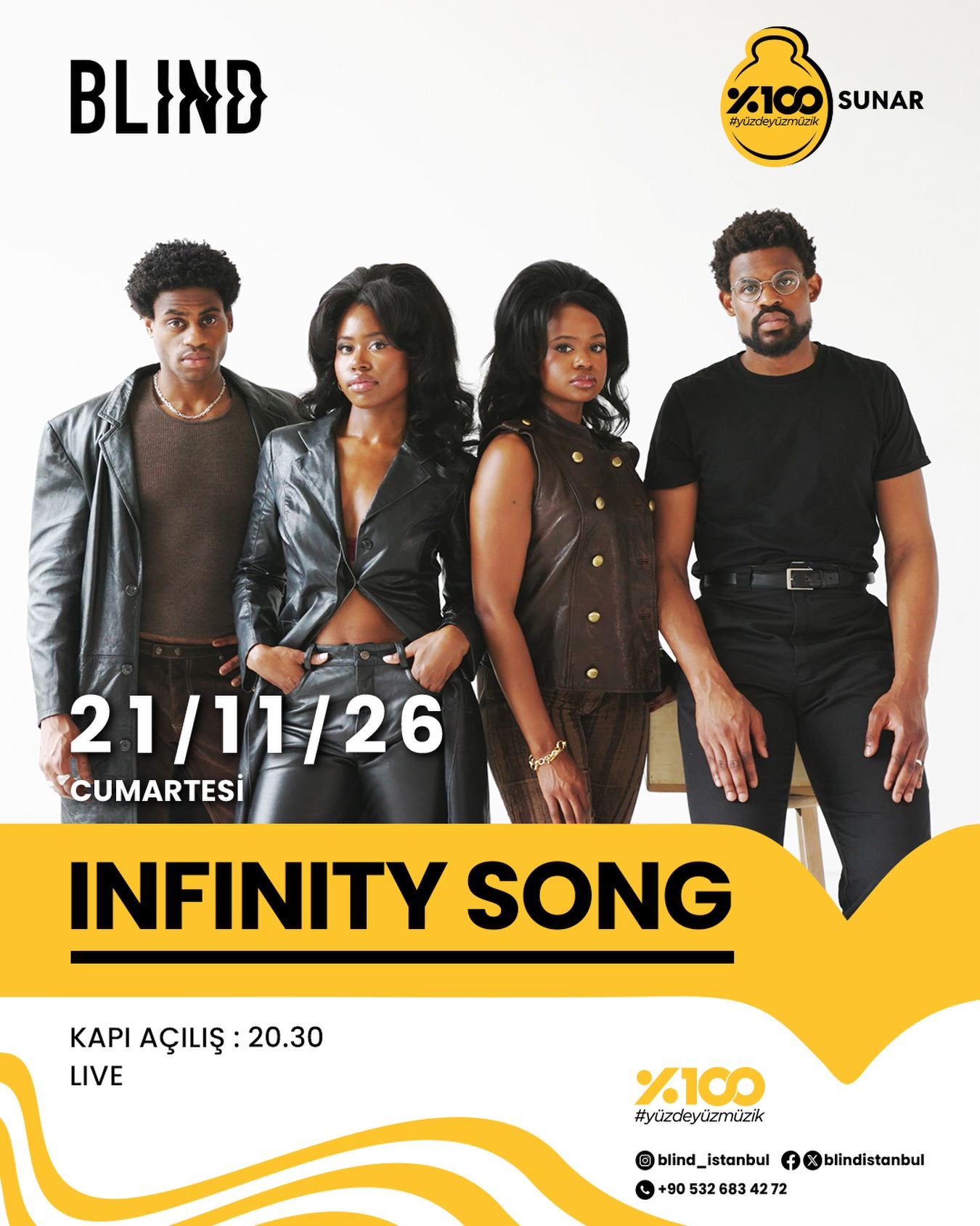New York’un yükselen soft rock kolektifi Infinity Song, küresel rüzgârını da arkasına alarak 21 Kasım’da %100 Müzik katkılarıyla ilk kez İstanbul’da Blind sahnesinde❤️🔥