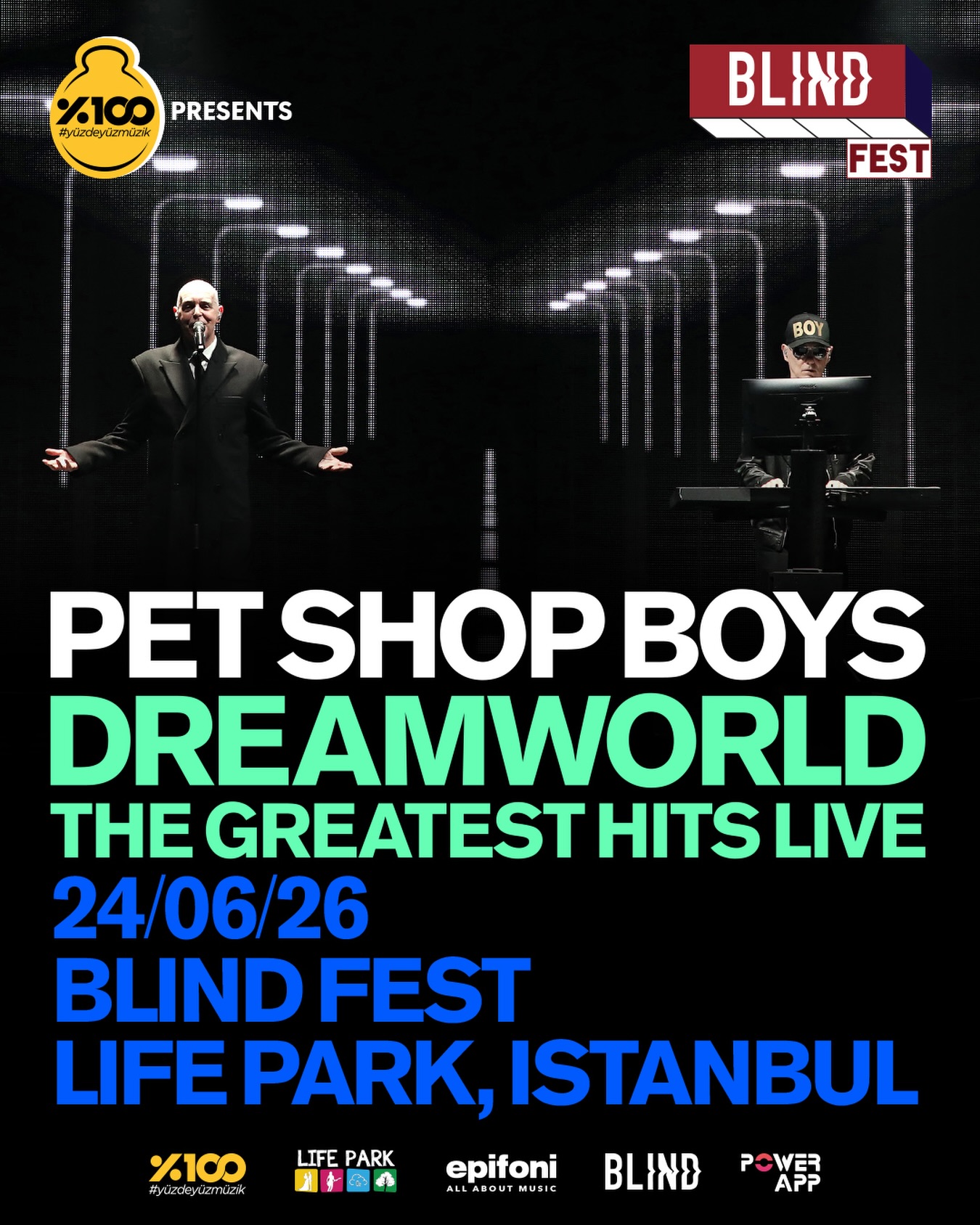 Elektronik pop müziğin en önemli gruplarından Pet Shop Boys “DREAMWORLD – The Greatest Hits Live” turnesi kapsamında Blind Fest’in ikinci günü 24 Haziran akşamı %100 Müzik katkılarıyla Life Park’ta 🫶🌞