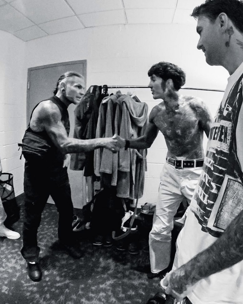 WWE’nin efsane ismi, aynı zamanda sahnelerde de müziğiyle tanınan Jeff Hardy, metalcore’un öncü gruplarından Bring Me The Horizon ile Raleigh, NC’deki konserin backstage’inde bir araya geldi.